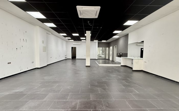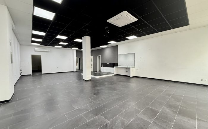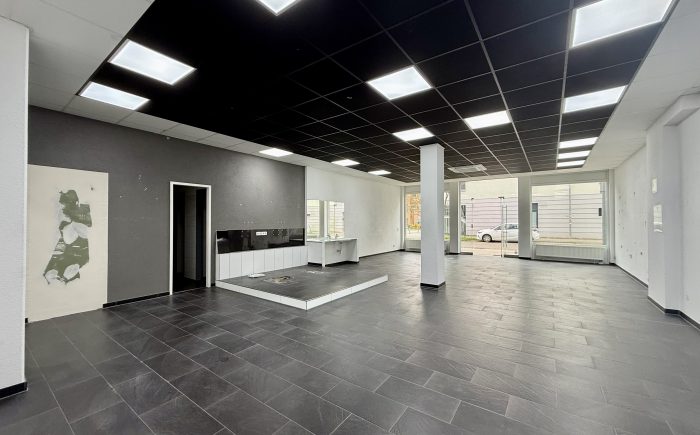 Die Gewerbeflächen ist aktuell in einen großen Verkaufsraum, einen kleineren Nebenraum und zwei WCs aufgeteilt. Durch die flexible Raumaufteilung bieten sich vielfältige Nutzungsmöglichkeiten an. Die Räumlichkeiten sind lichtdurchflutet und verfügen über große Fensterflächen, die für eine angenehme Arbeitsatmosphäre sorgen.